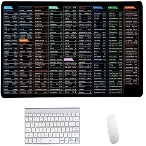 Quick Key Keyboard Mouse Pad, Non-Slip Desk Mat with Office Software Shortcuts Pattern, Upgraded Extended Large Rubber Base Mice Smooth Cloth Mouse Pad Desk Mat